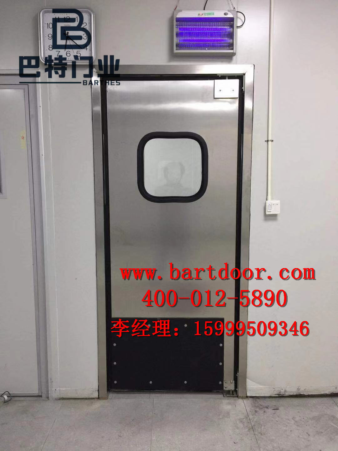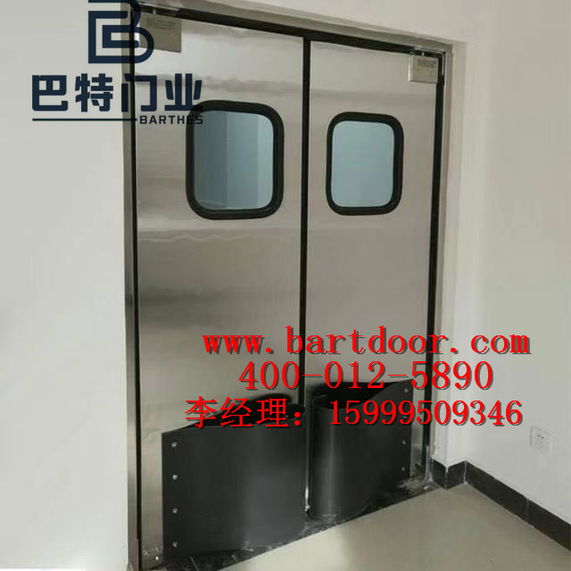 防撞门,又称撞击门,其全称为防撞自由门,是目前食品行业应用较多的一款高效自动门,其特点洁净,易维护,使用寿命长,维护率低等特点,巴特定制不锈钢酒店厨房门及食品车间防撞门,中央厨房不锈钢防撞自由门是目前使用最方便的门。