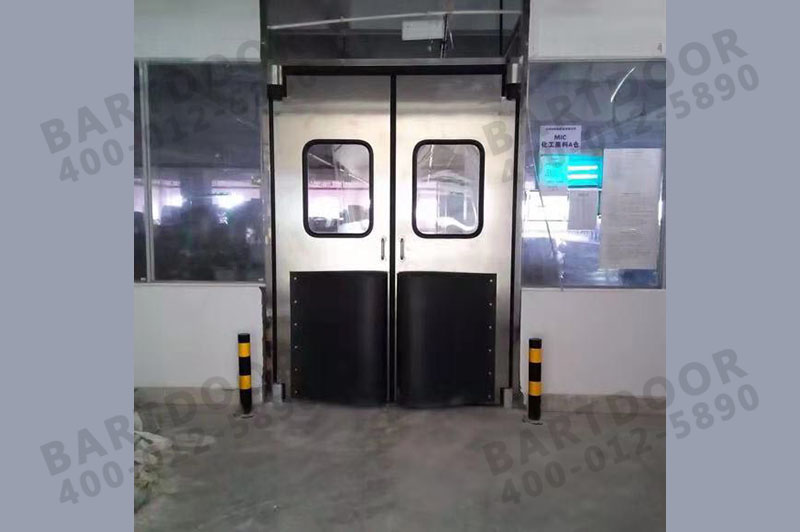 防撞自由门可使人或物迅速通过,大大简化了通过传统单开门要做的停止、开门、通过、然后关门的一系列动作,从而能大大提高工作效率。自由门可以通过手推或手推车甚至叉车的撞击等方式在两个方向上自由开启,当人或物通过后再自动关闭。